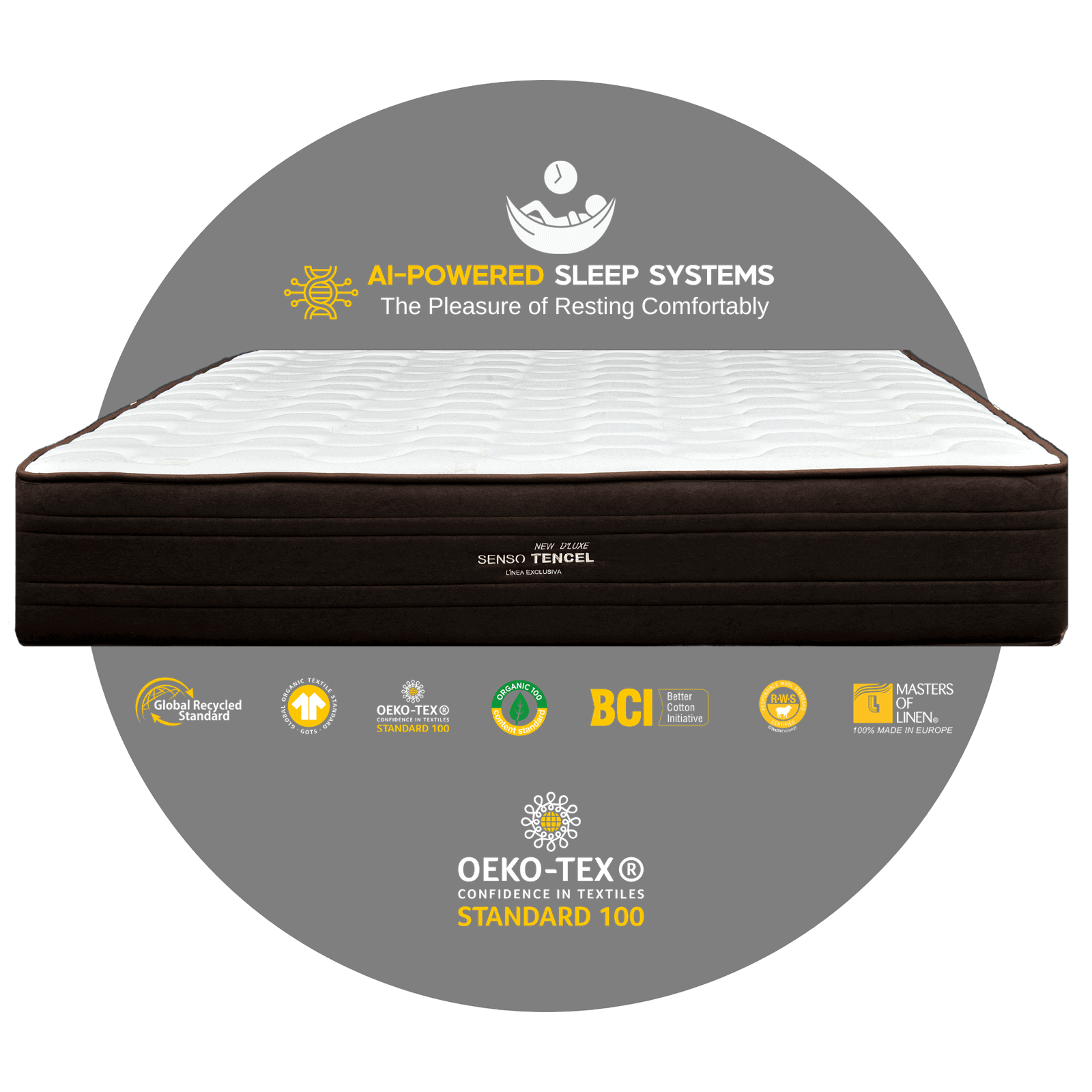 En Antelae Colchón Tech te presentamos NEW SENSO TENCEL V6, un sistema de descanso de alto nivel que fusiona tecnología, sostenibilidad y confort superior, utilizando tejido natural y materiales certificados para cuidar de ti y del entorno.
